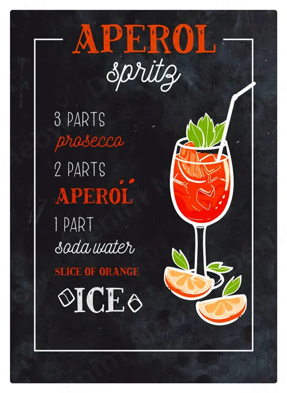Винтажный постер Prosecco, коктейли, металлические оловянные вывеск...