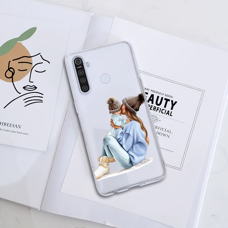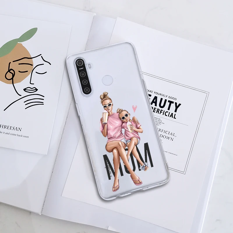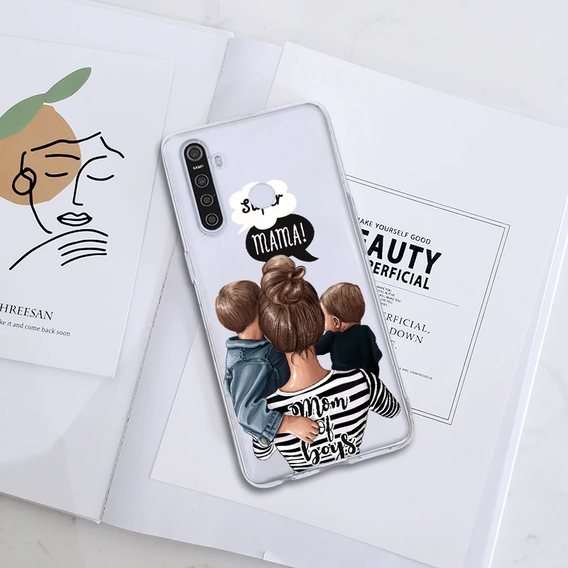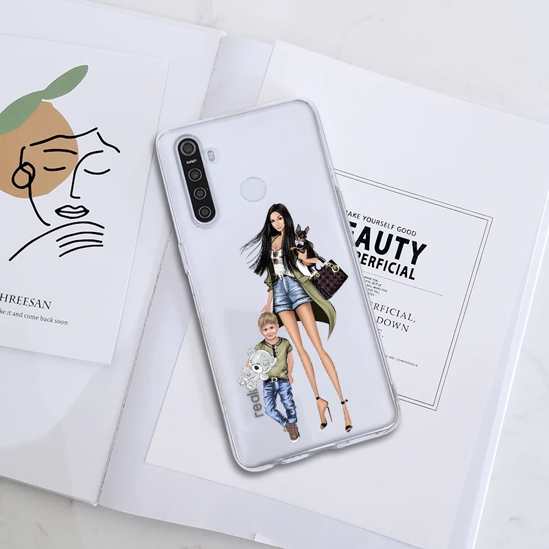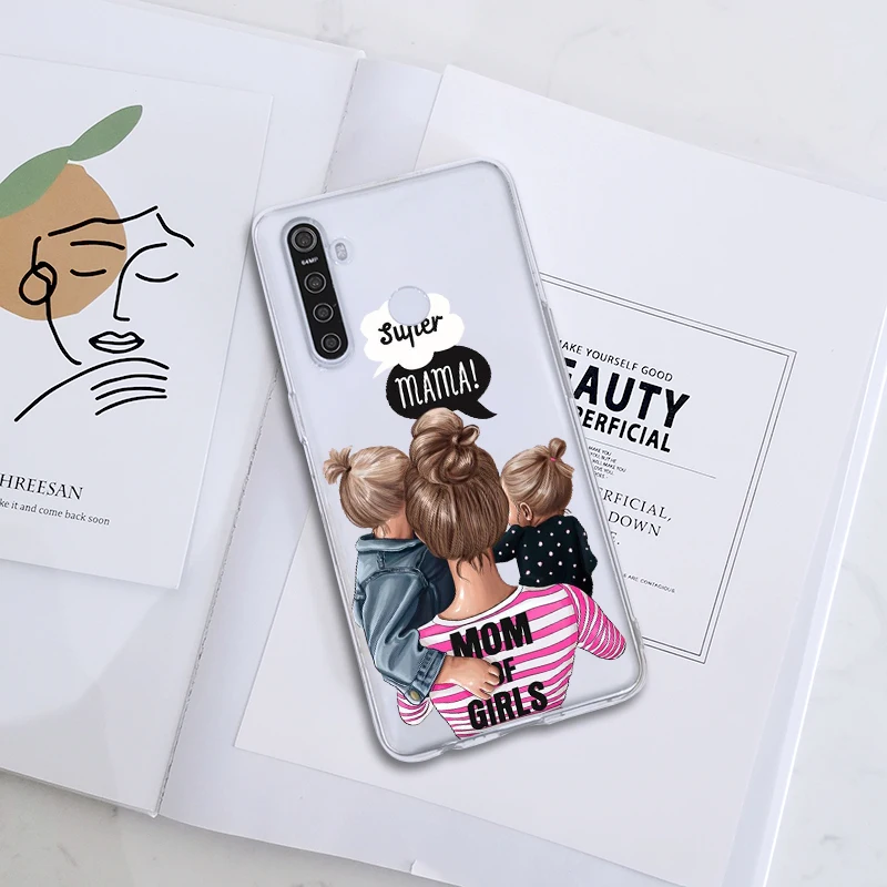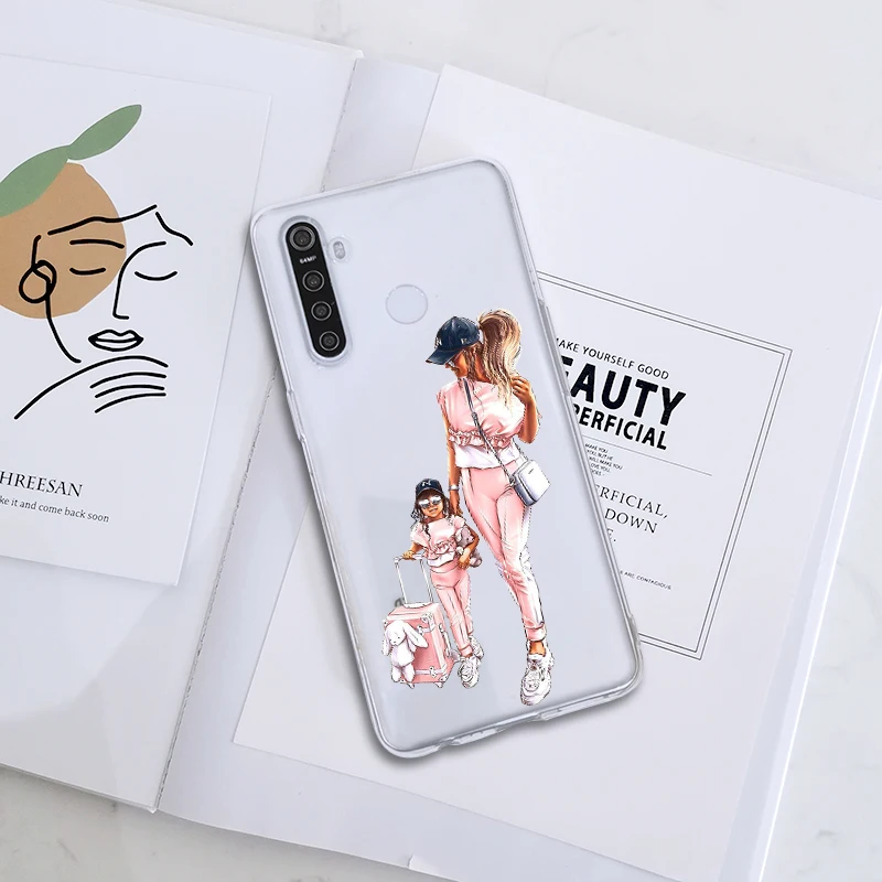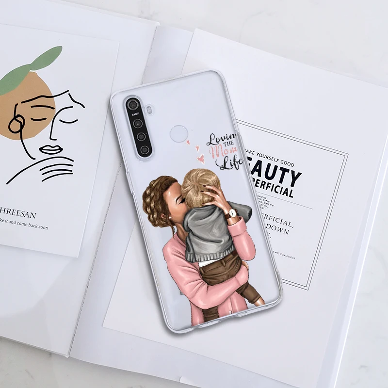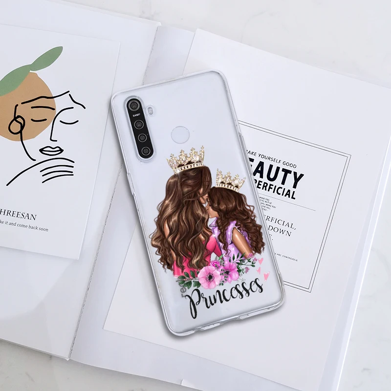 Fashion Black Brown Hair Baby Mom Girl Patterned Painted Phone Case