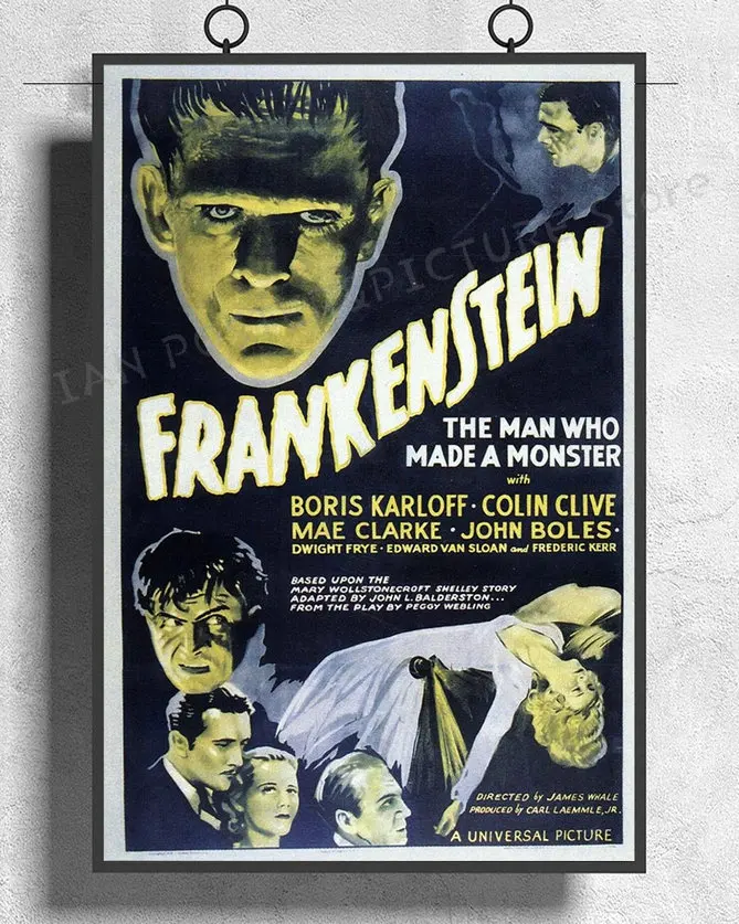 NJ580 Франкенштейн (1931), фильм, ужас, наклейка на стену, Шелковый плакат, искусство, украшение для дома
