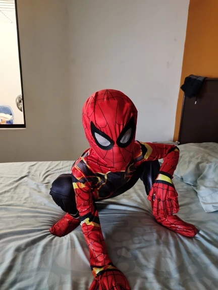 Продукт замечательный! Мой 7-летний сын был в восторге! Материал очень хороший, точный размер, как сделано на ваш размер. Цвета, Белый Паук, как у игры, это удивительно! В качестве подарка он приносит слой и, как маска Человека-паука, он также приносит переднюю застежку-молнию, чтобы он мог пойти в ванную, не снимая ее. 100% рекомендуется, он прибыл очень быстро, я не ожидал этого так скоро!