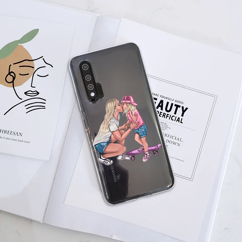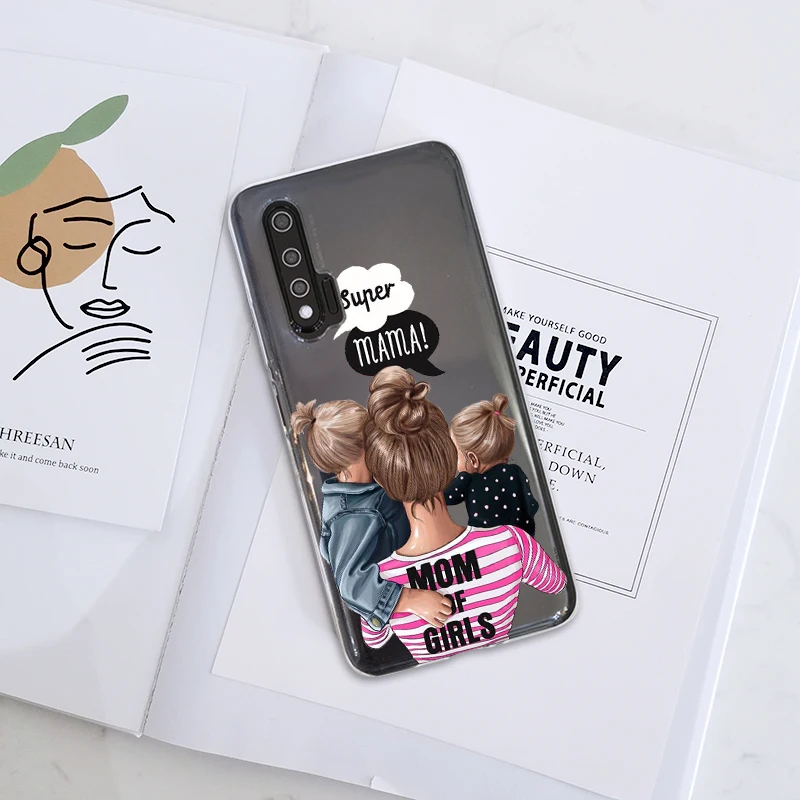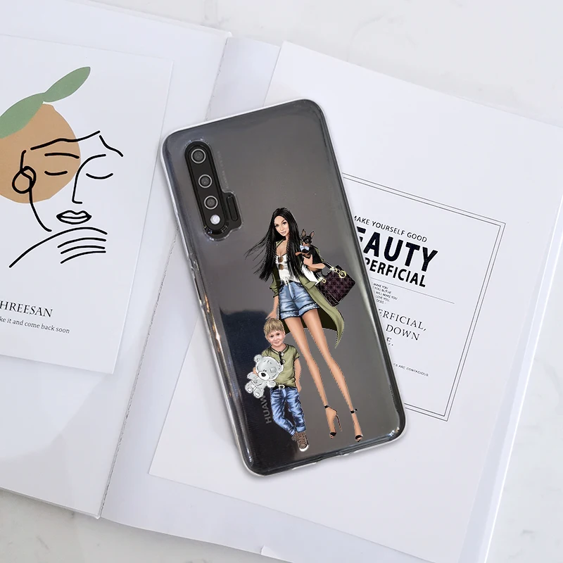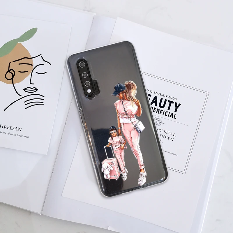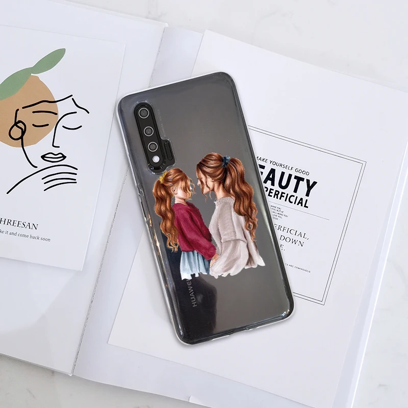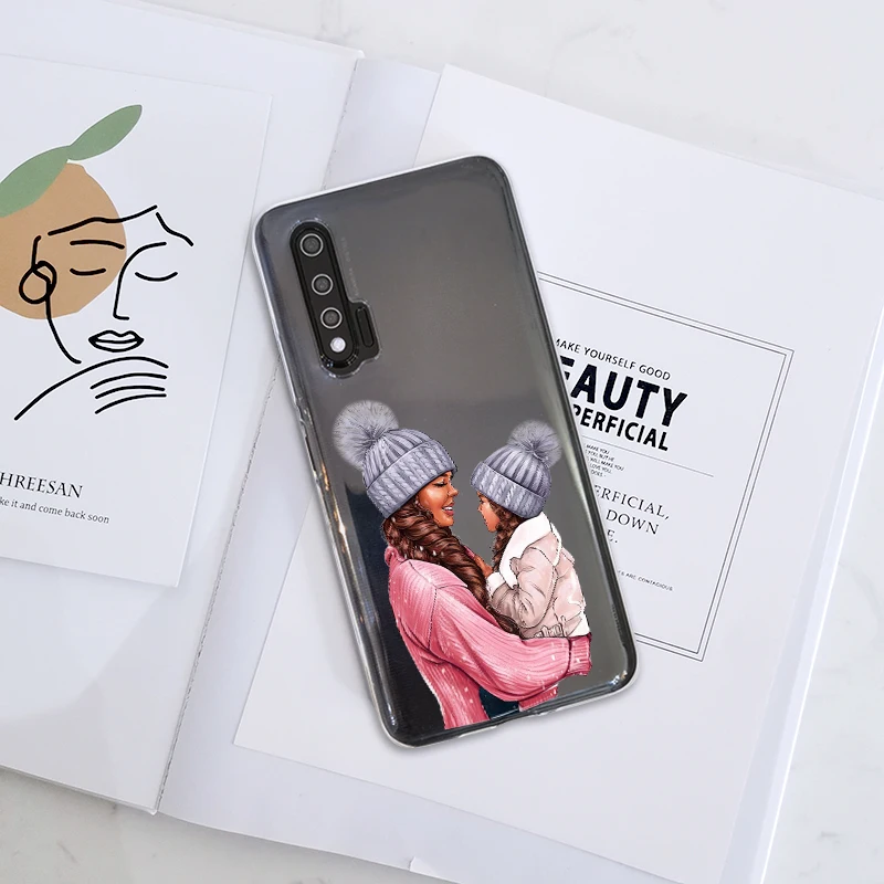 Fashion Black Brown Hair Baby Mom Girl Patterned Painted Phone Case