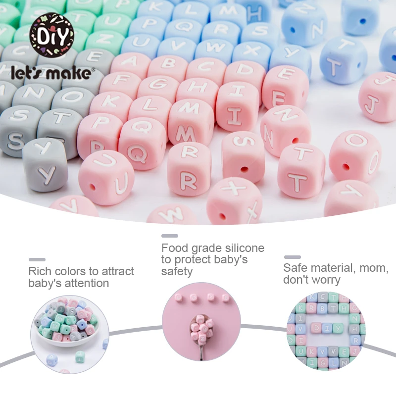10 шт., силиконовые бусины в виде букв для прорезывания зубов