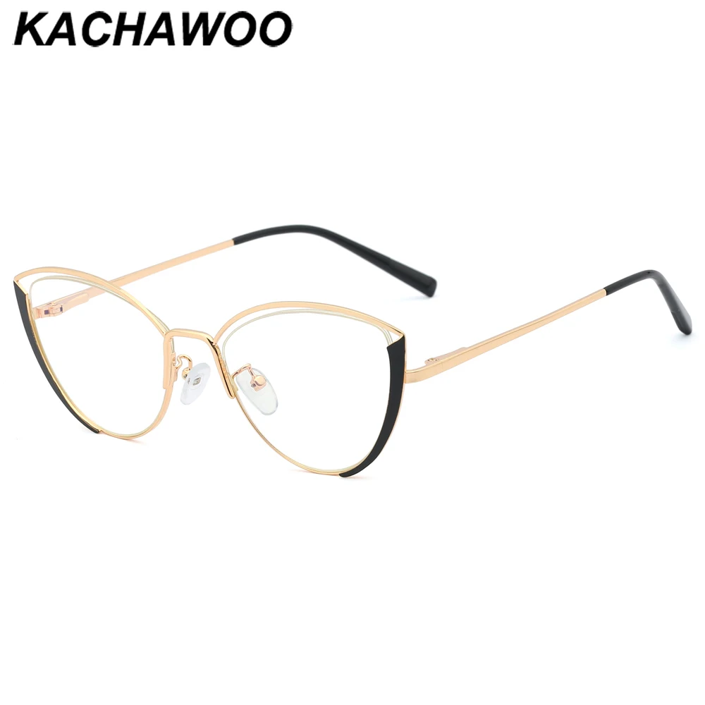 Kachawoo, анти-синий светильник, очки для женщин, компьютерная оптическая полуоправа, кошачий глаз, Женская оправа для очков, черный, розовый, металлический, Осенний подарок