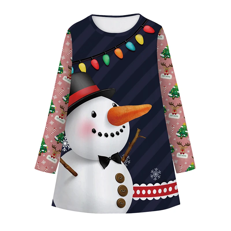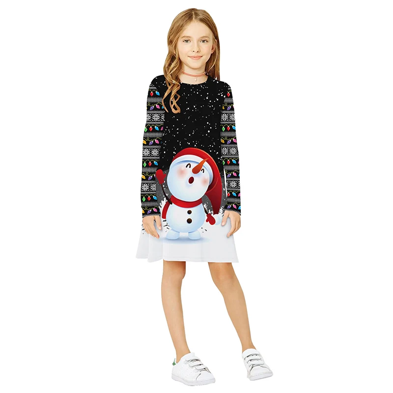 Детское рождественское платье, милое платье для девочек с мультяшным принтом снеговика, костюм на Хэллоуин, детская одежда, рождественский подарок для девочки