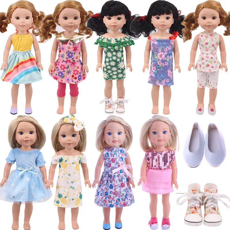 Одежда для кукол Wellie Wisher 14,5 ", Радужное платье, платье принцессы с открытыми плечами, Короткие туфли для кукол, подарки, 32-34 см