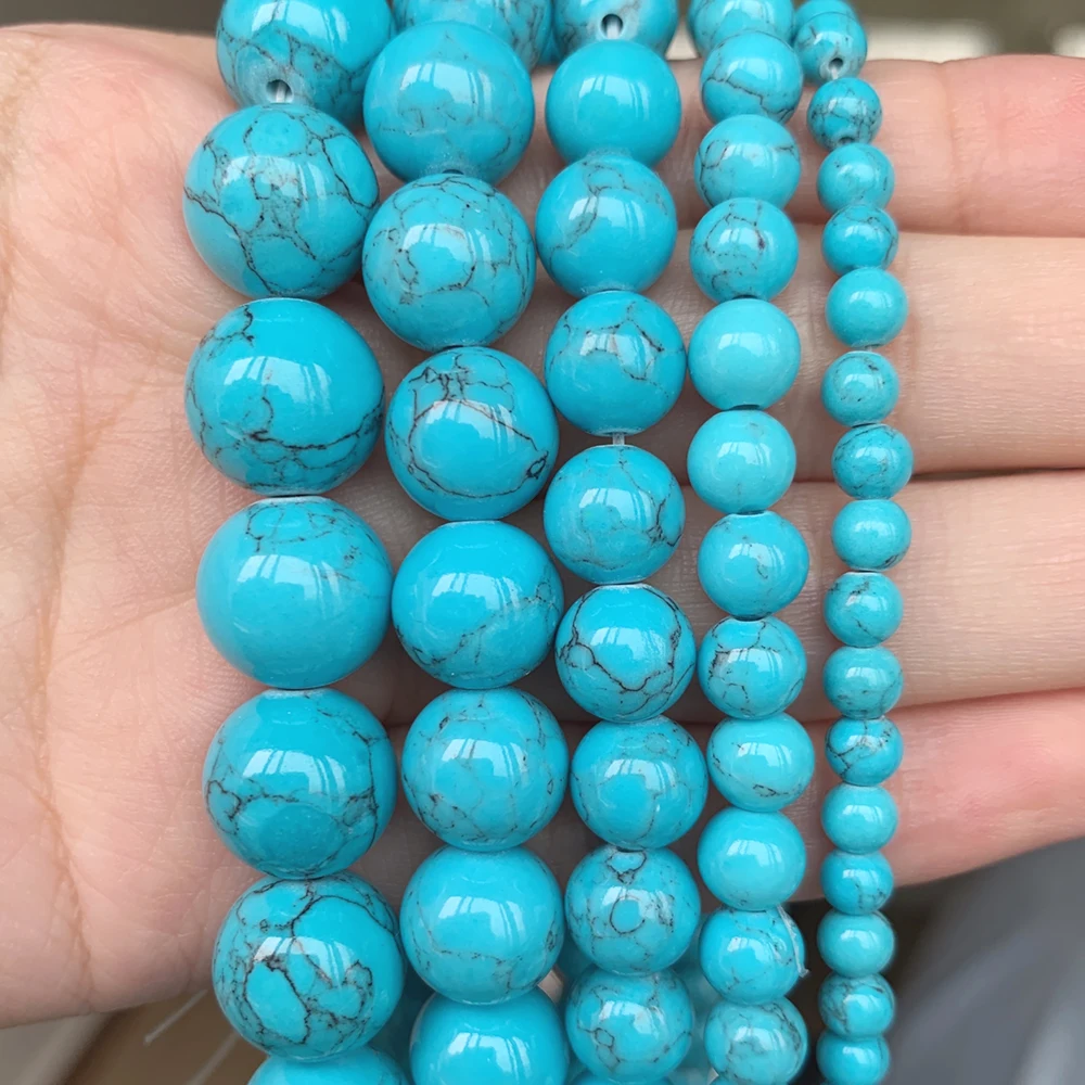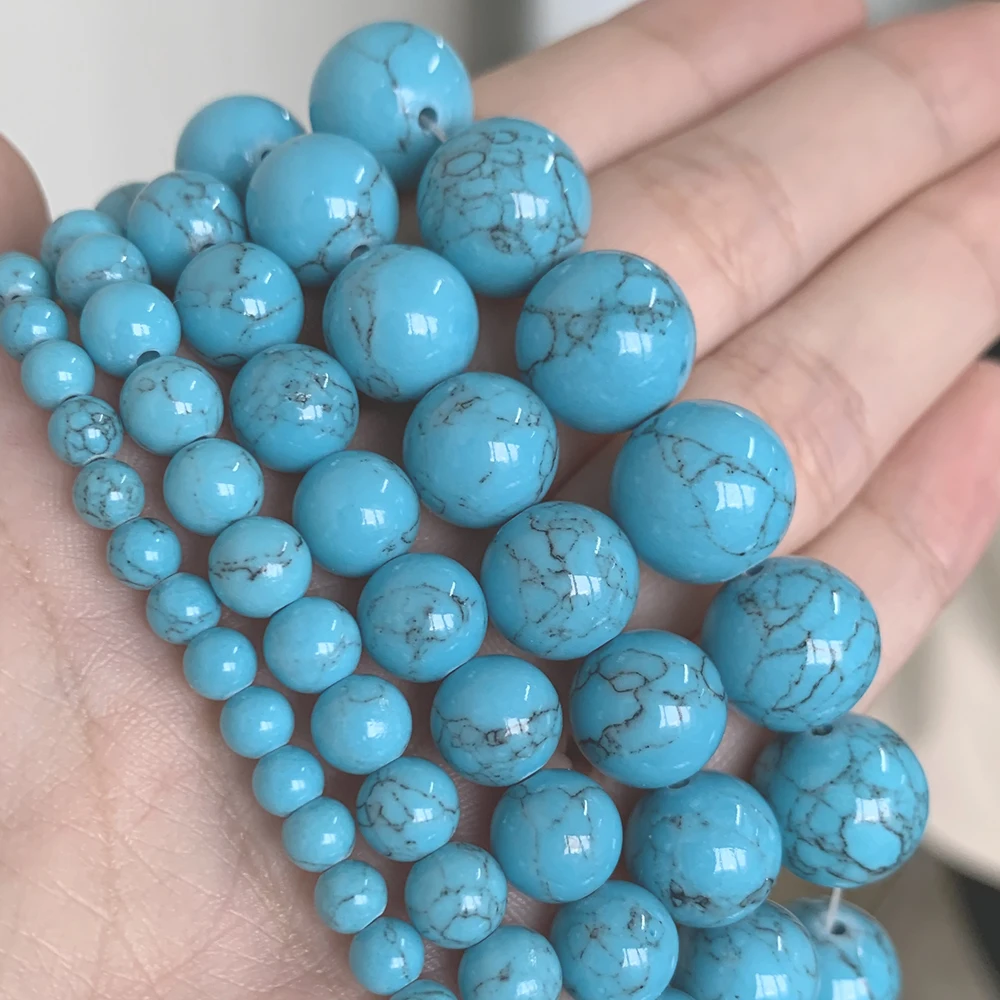 Круглые бусины естественный голубой Хаулит для браслетов сделай сам, бирюзовый камень аксессуары для изготовления ювелирных изделий, нити 15 дюймов, 4681012 мм