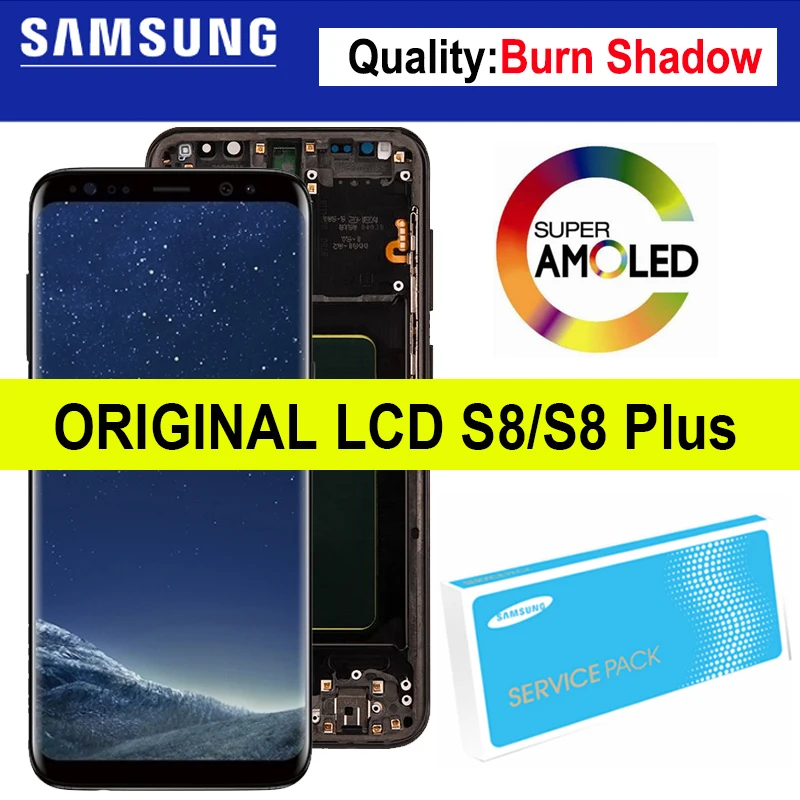 ЖК-дисплей Burn Shadow для SAMSUNG Galaxy S8, G950F, S8 Plus, G955F, Super AMOLED, с рамкой, сенсорным экраном, дигитайзером, запасные части