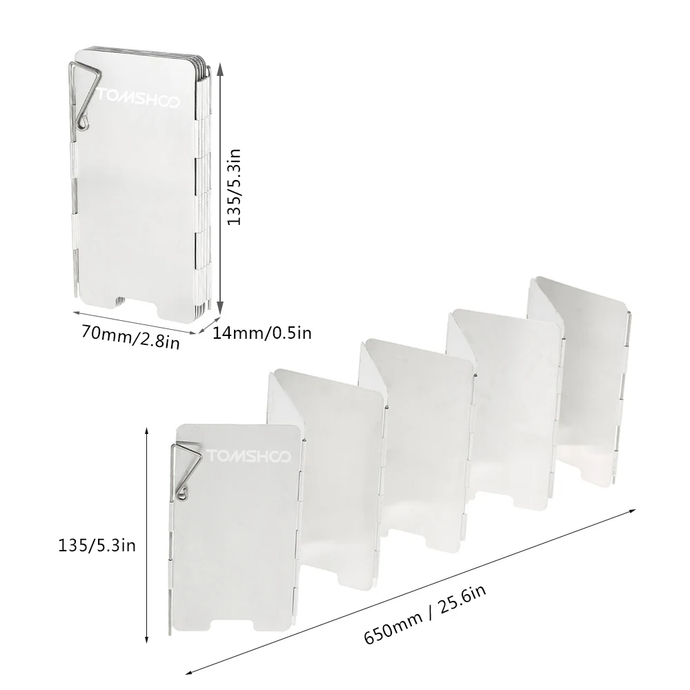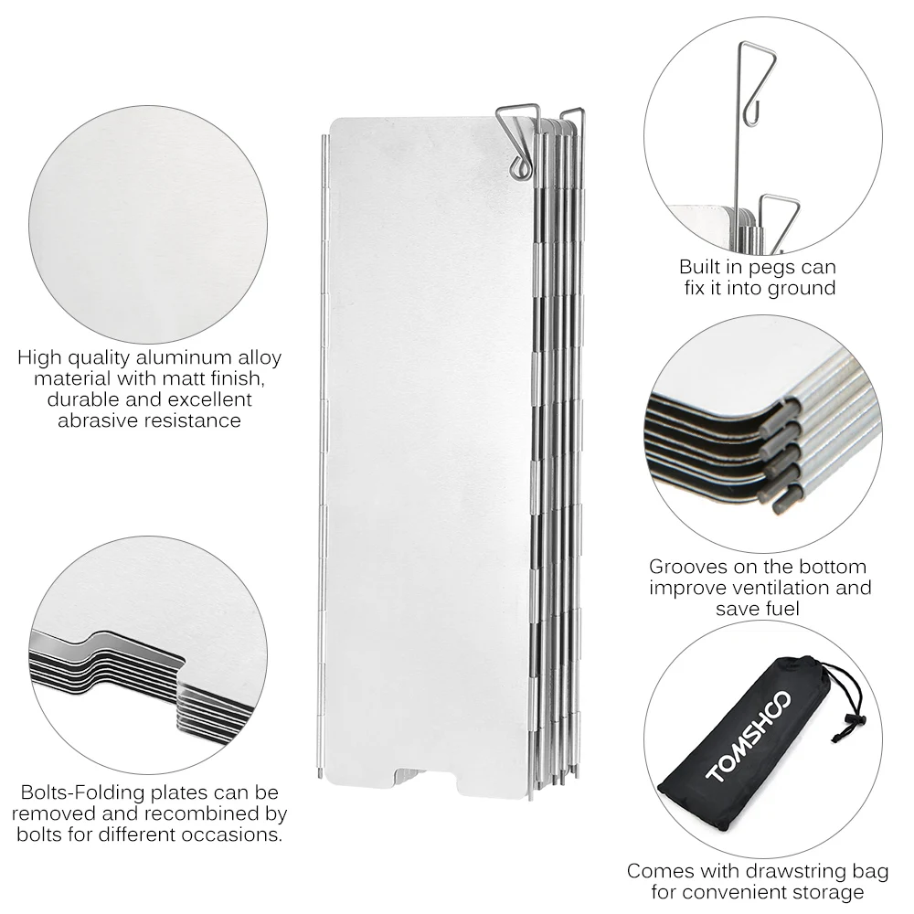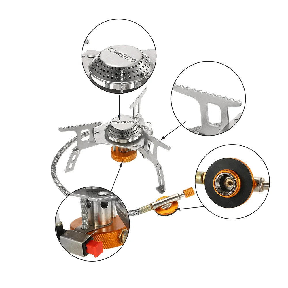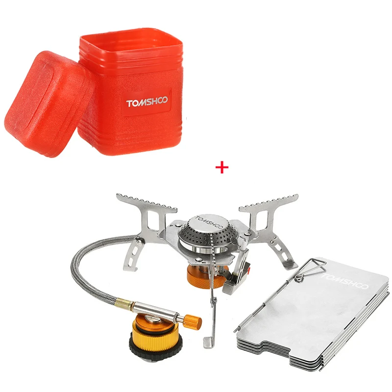 Походная плита TOMSHOO включает в себя складную газовую плиту, 9-пластинное лобовое стекло и конвертер газового картриджа. Он идеально подходит для кемпинга на открытом воздухе, походов, пеших прогулок, пикника и т. д.