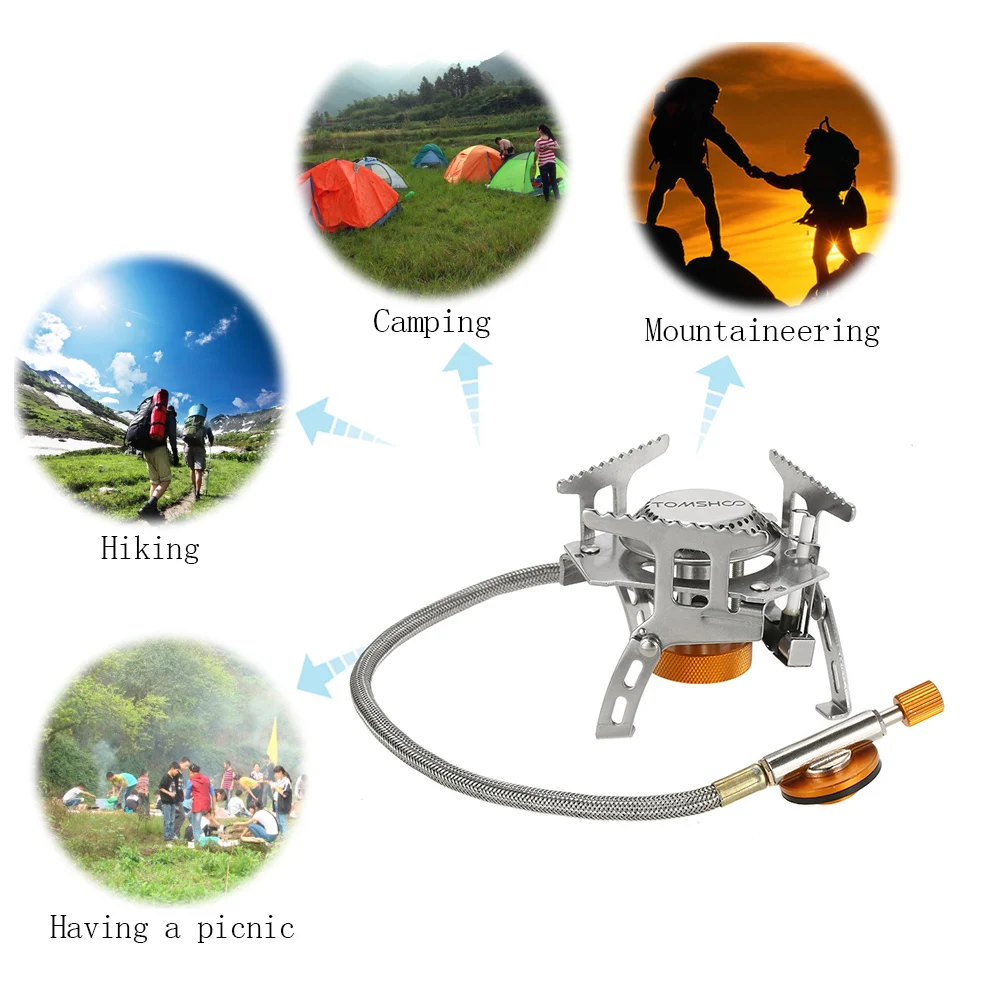 Туристическая горелка TOMSHOO, Складная газовая горелка для отдыха на природе, плита в комплекте, ветрозащитная дровяная плита, адаптер для газовой посуды