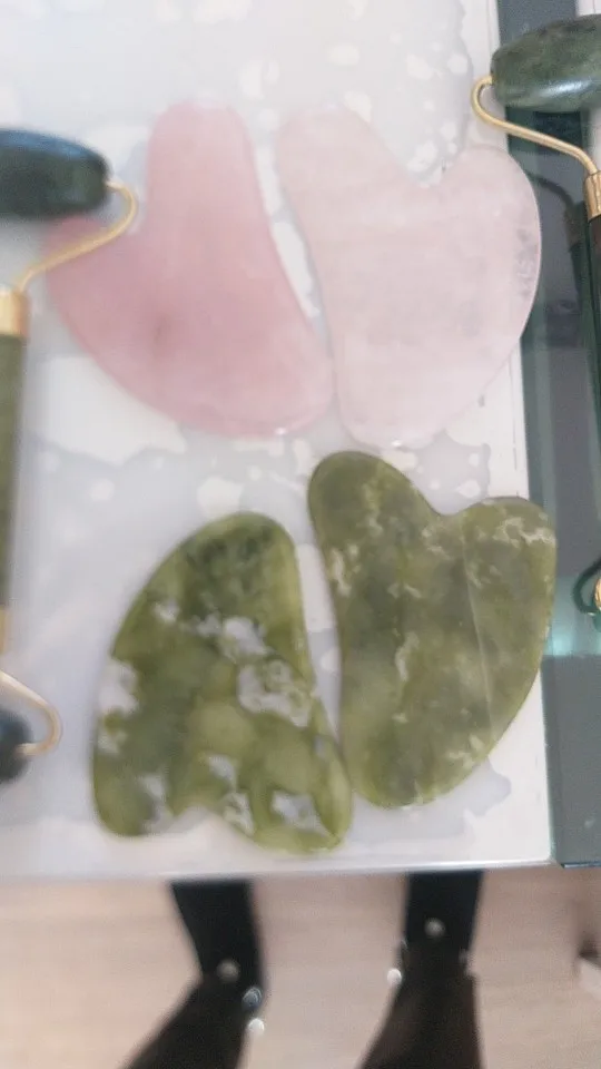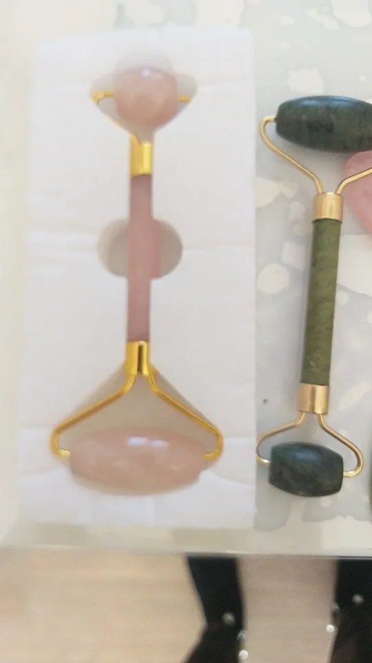 Пластина-скребок из розового кварца, ролик для массажа лица натуральный нефрит, двойная головка, для похудения, ролик для массажа лица, против морщин