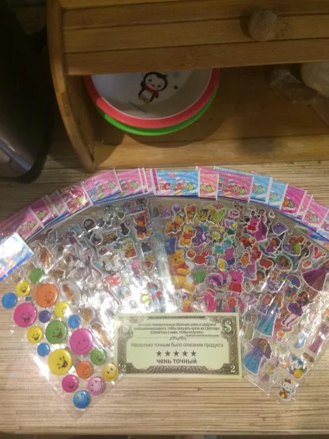 все пришло, но много наклеек не интересных и не знакомых детям, ожидала более интересные наклейки, я не довольна