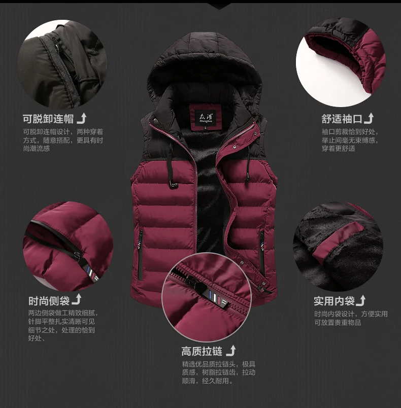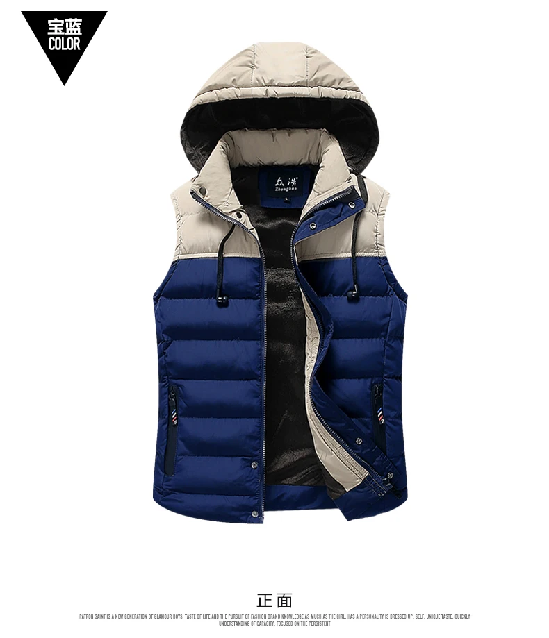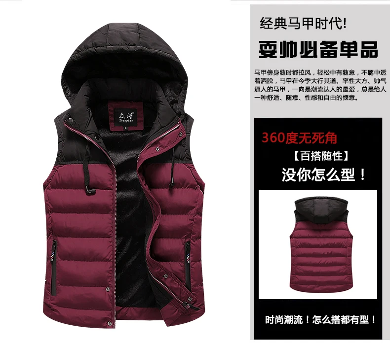 Мужская куртка, жилет, Мужская зимняя безрукавка с капюшоном, мужской облегающий теплый плотный жилет двух цветов, женская одежда