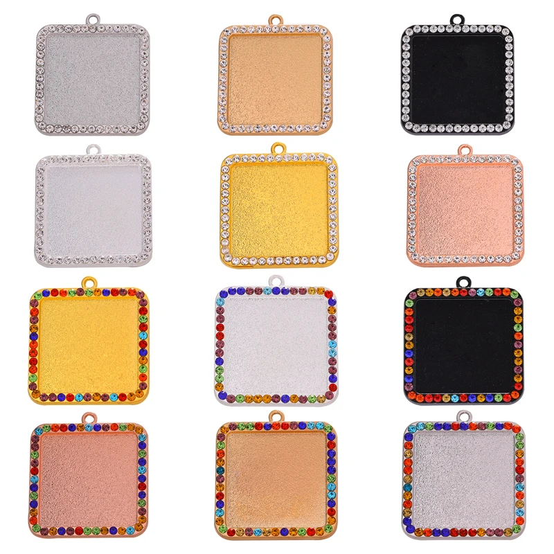 JUYA Красочные Стразы основа Подвески DIY Изготовление ювелирных изделий для амулеты ожерелье брелок ремесла аксессуары 25 мм квадратный сплав лоток