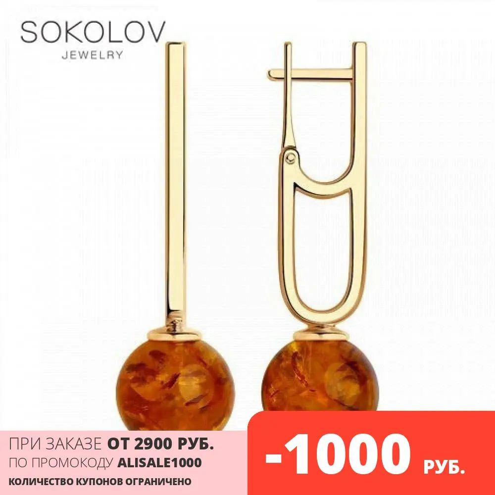 Серьги SOKOLOV из серебра с янтарём, Серебро, 925, Женские, Серьги ...