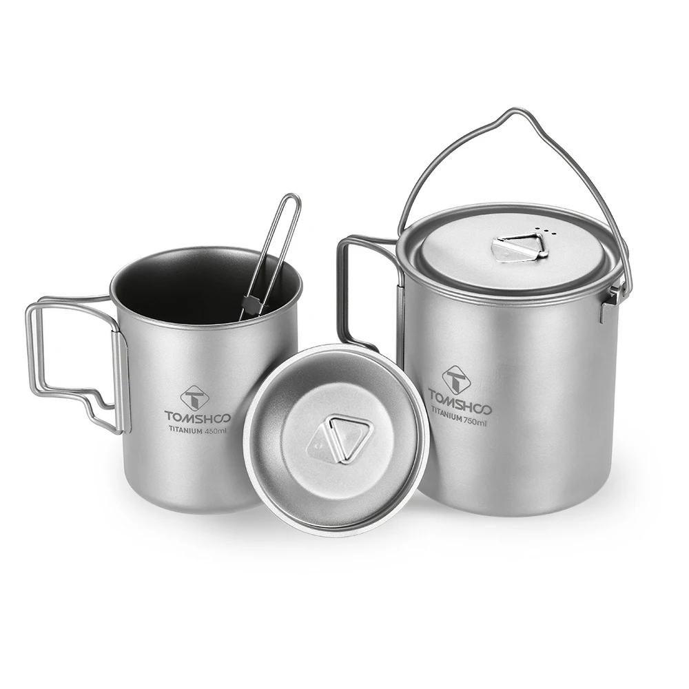 Это набор из 3 предметов из титана, который включает в себя кастрюлю объемом 750 мл, чашку объемом 450 мл и спортивный набор. Полный комплект изготовлен из прочного титана, легкого и стойкого к коррозии. Упакуйте весь комплект в прилагаемый мешок для хранения и вещи в рюкзаке, ваше путешествие будет более удобным и приятным.Особенности:Набор из 3 предметов: полный титановый набор включает в себя кастрюлю объемом 750 мл, чашку объемом 450 мл и складную спортивную складку, отлично подходит для кемпинга, пеших прогулок, альпинизма, активного отдыха и выживания.Легкий и прочный: Легкая титановая конструкция устойчива к коррозии и служит в течение многих лет. Он не придает вкуса и запаха еде или напитку.Эффективный нагрев: с крышкой для предотвращения потери тепла. Круглые края для легкой очистки и повышения эффективности нагрева.Удобный для пользователя: горшок маркирован градацией в унции и мл. Складные ручки для удобного использования и хранения. Подвижная планка на spork для блокировки его ручки.Удобно: каждая деталь хорошо упакована в мешок для хранения и вложена внутри кастрюли для компактного хранения, удобно носить с собой куда угодно.Технические характеристики:Материал: титанГоршок:Емкость: 750 млРазмер: 102*110 мм/4,0 * 4.4inВес горшка: 130 г/4,6 унцийКубок:Емкость: 450 млРазмер: 83*97 мм/3,3 * 3.8in (D * H)Вес: 92 г/3,2 унцийКомбинированных ложек и вилок:Открытая Длина: 150 ммДлина в сложенном виде: 87 мм/3,4 дюймаВес: 19 г/0,7 унцийВ комплект входит:1 * Титановый горшок1 * титановая чашка1 * Титан комбинированных ложек и вилок