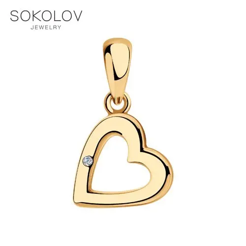 Подвеска SOKOLOV из золочёного серебра с бриллиантом, Серебро, 925, Оригинальная продукция