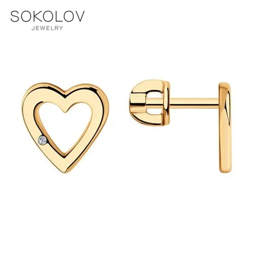 Серьги SOKOLOV из золота с фианитами, Золото, 585, Детские, Серьги ...