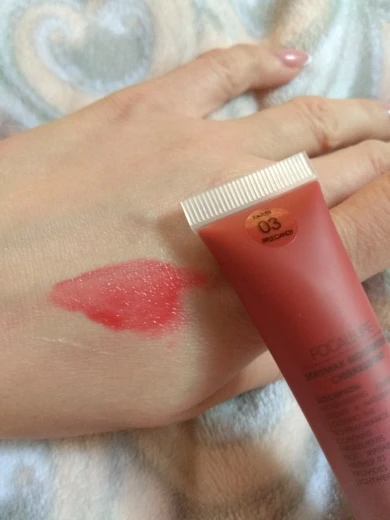 Хороший тинт,как румяна идеален, держится часов 6 минимум( на жирной коже),хорошо тушуется но нужно брать капельку и сразу тушевать,ибо застывает молниеносно и держится намертво,особенно если припудрить прозрачной пудрой!Как помада для губ хуже,скатывается и цвет сам по себе сходит на нет.Буду брать еще другие оттенки в качестве румян)