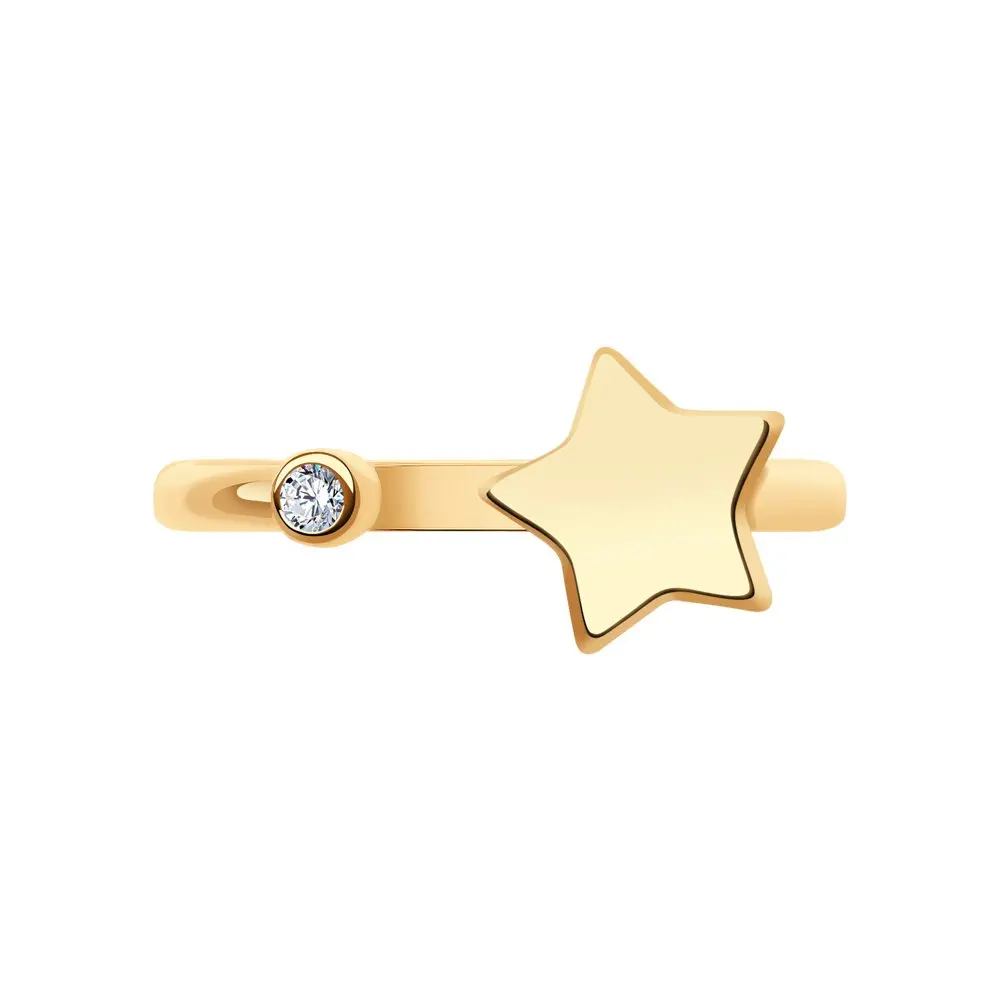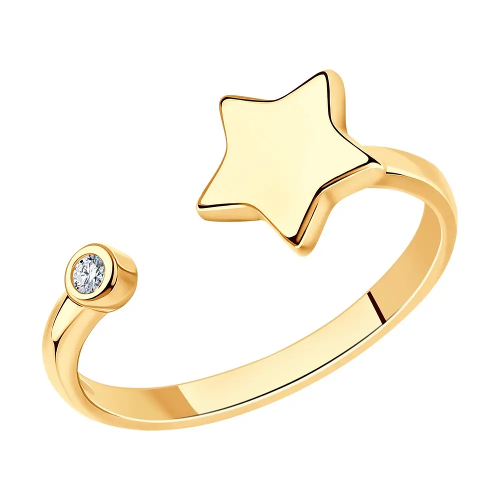 Кольцо SOKOLOV из золочёного серебра с фианитом, Серебро, 925, Женское, Оригинальная продукция