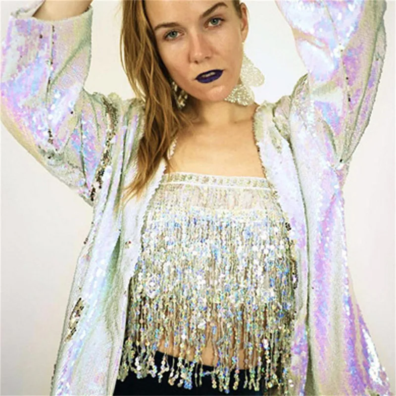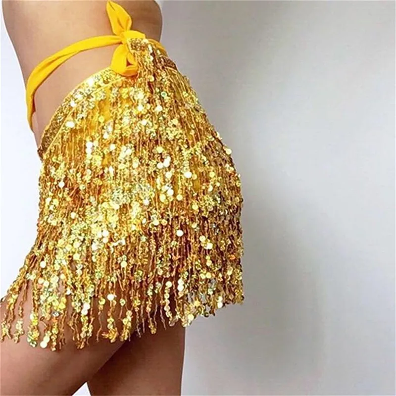 Платок-цепочка для танца живота, золотистый, синий, розовый, фиолетовый, бахрома с блестками