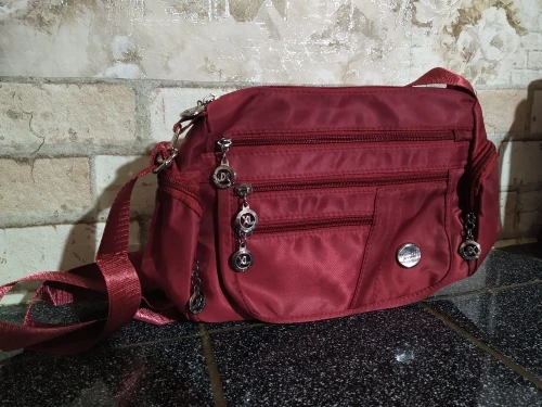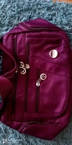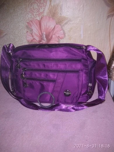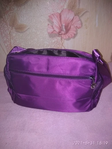 хорошая рабочая сумочка. цвет оказался совсем фиолетовым. по фото мне казалось, что он более розовый. нитки торчали. в общем за эту цену нормально. карманов много, все рабочие. ремень почти как в машине ремень безопасности, сумка истлеет, а он ещё живой будет.