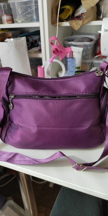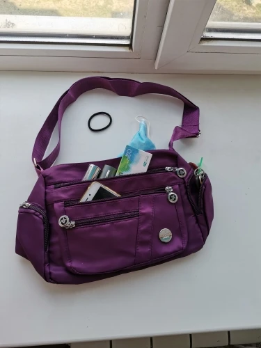 Сумка доставлена по программе Plus, пришла вовремя, ну может на денёк опоздала, звезду не снимаю) на ощупь приятная, очень лёгкая, под дождь ещё не попадала, после отпишусь насчёт непромокаемости. Сумка сшита качественно, нитки не торчат, замки молнии крепкие, карманов много, как я люблю, сама она не большая, на фото батон помещается)))) и ещё место остаётся, это в основное место, а в другие кармашки уходят куча мелочи!! Сумочку очень ждала, цвет такой же как на фото, описание совпадает, я очень довольная покупкой, продавец молодец, положил мне Подарок, резинку доя волос, как раз вовремя, мою Кот куда то утащил)))) Товар супер продавца рекомендую, доставка быстрая!