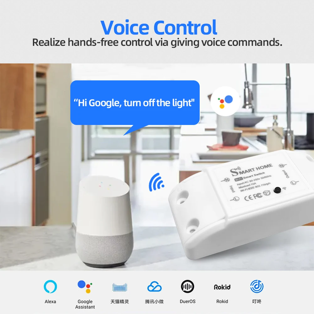 Tuya 10A Интеллектуальный переключатель Wi-Fi 2,4 ГГц Беспроводной ...