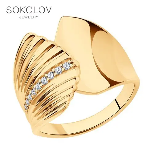 Кольцо SOKOLOV из золочёного серебра с фианитами, Серебро, 925, Женское, Оригинальная продукция
