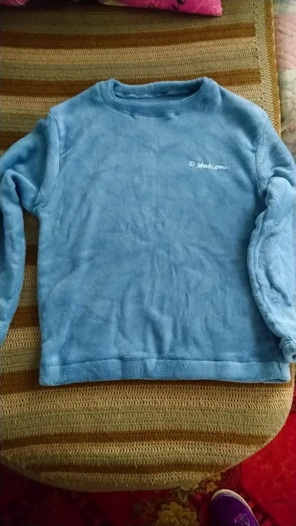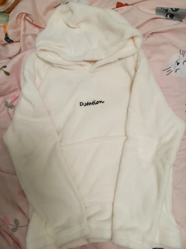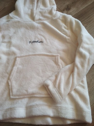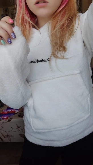 Очень мягкая и уютная кофточка. Идет размер в размер, если хотите посвободнее - берите на размер, а лучше на два больше. Немного лезет, но ничего криминального. Я брала со скидкой, поэтому качеством за такую цену вполне довольна. Единственный огромный минус - ОЧЕНЬ КОРОТКИЕ рукава. Я даже не представляю, на какой рост она рассчитана с такими рукавами. И не похоже, что на манжетной части рукавов резинка, больше похоже на веревку, ибо почти не тянется и круглая. Собственно, понизу кофты также резинка не тянется особо. Надпись прошита так себе, особенно из-за длинного ворса выглядит дешево. На самом деле, кофта не слишком теплая, явно не на зиму, т.к ткань под ворсом тонюсенькая. В общем, дома ходить осенью - в самый раз.