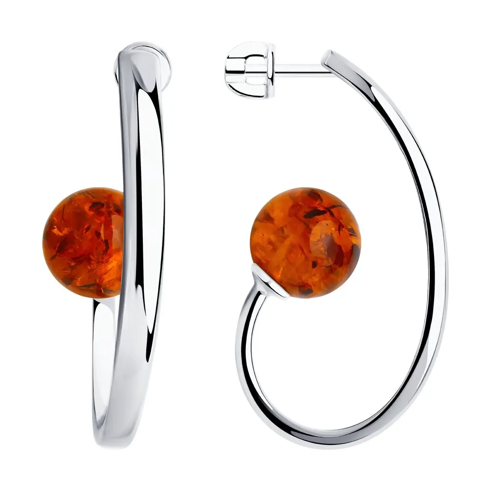 Серьги SOKOLOV из серебра с янтарём, Серебро, 925, Женские, Серьги 2021 тренд, Оригинальная продукция