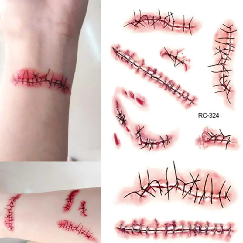 Сшитые раны страшные шрамы временная татуировка наклейка водостойка...