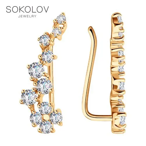 Серьги SOKOLOV из золочёного серебра с фианитами, Серебро, 925, Женские, Серьги 2022 тренд, Оригинальная продукция