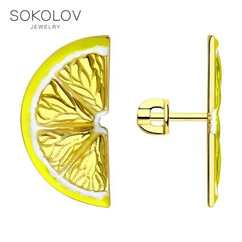 Серьги SOKOLOV из золочёного серебра с и эмалью, Серебро, 925, Женские, Серьги 2022 тренд, Оригинальная продукция
