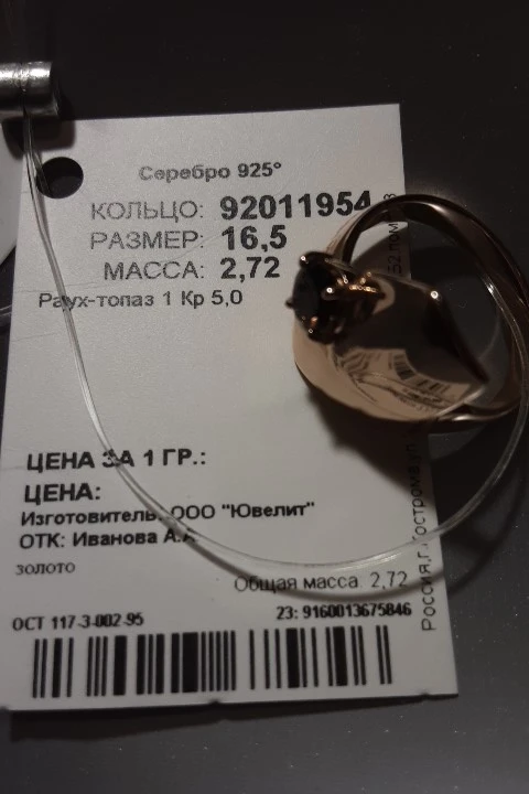 Кольцо SOKOLOV из золочёного серебра с раухтопазом, Серебро, 925, Ж...