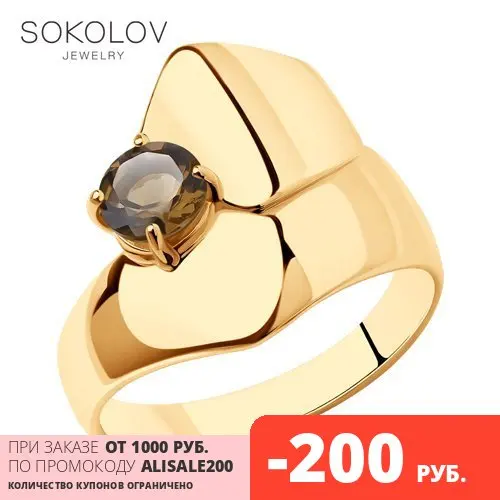 Кольцо SOKOLOV из золочёного серебра с раухтопазом