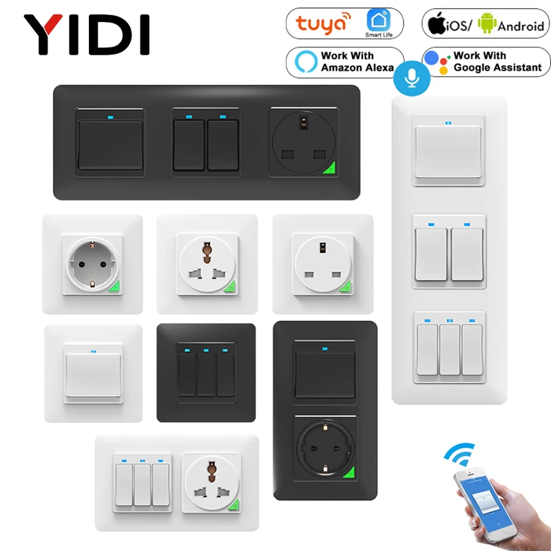 Умная настенсветильник розетка Tuya, выключатель с беспроводной кнопкой управления через приложение, поддержка Wi-Fi, AlexaGoogle Home