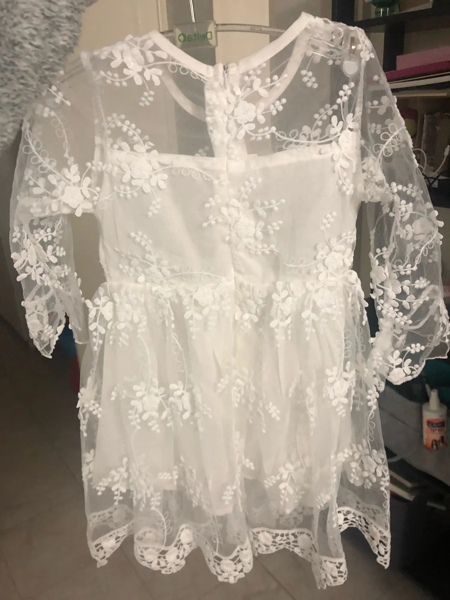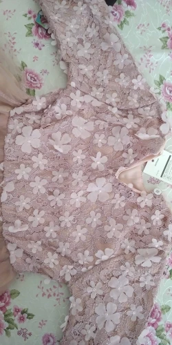 Моя дочь попробовала это, платье очень красивое, праздничное, но жаль, что поддоны падают и не держатся. Я отмечаю, что качество остается плохим. Я думаю, что это не продлится долго.