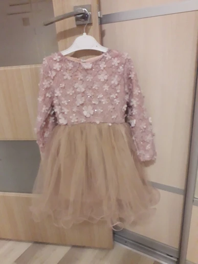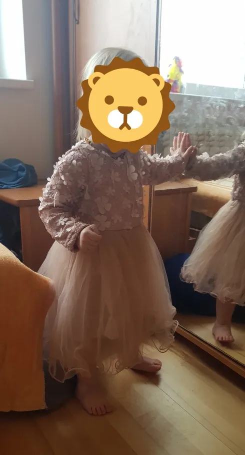 Красивое платье, размер не складывается. Выпадает меньше. Ребенок имеет размер 110/116, я купил t6 и хорошо сидит. Полная Быстрая доставка