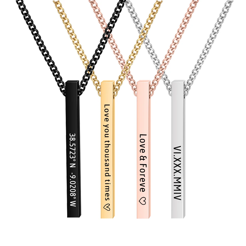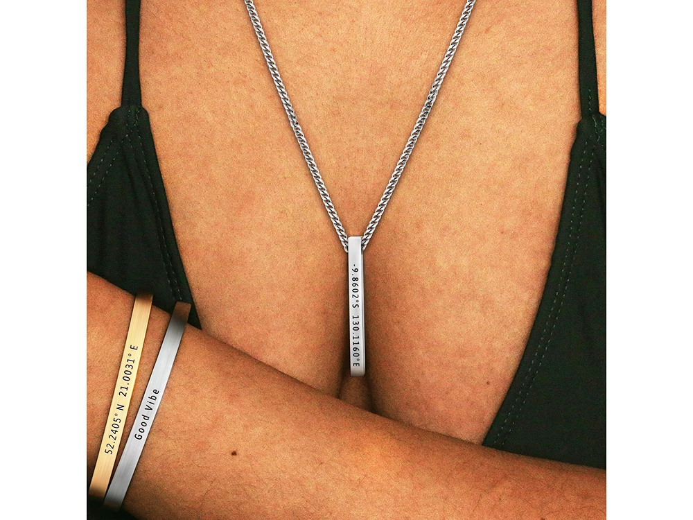 Ожерелье и браслет с гравировкой, из нержавеющей стали