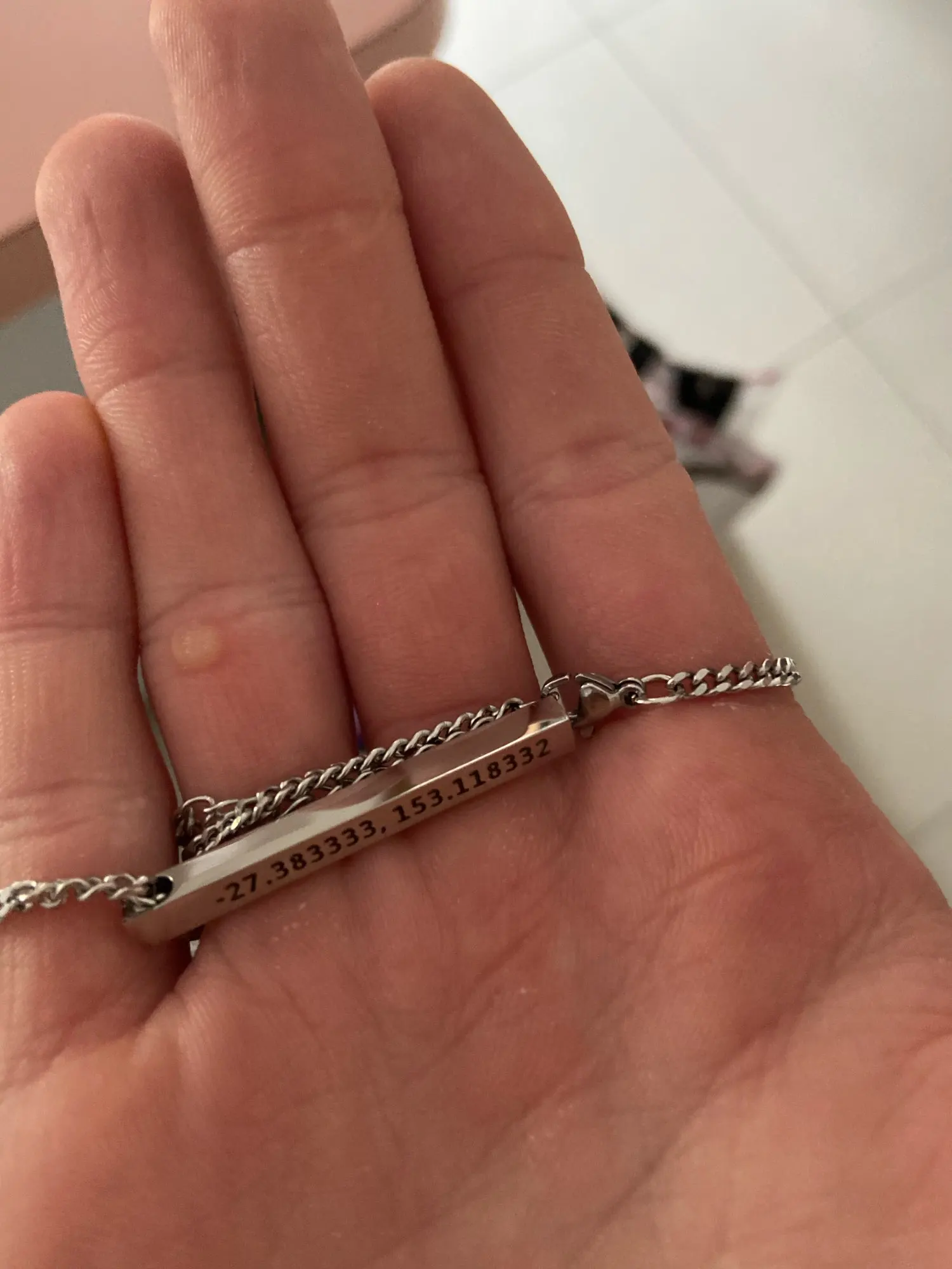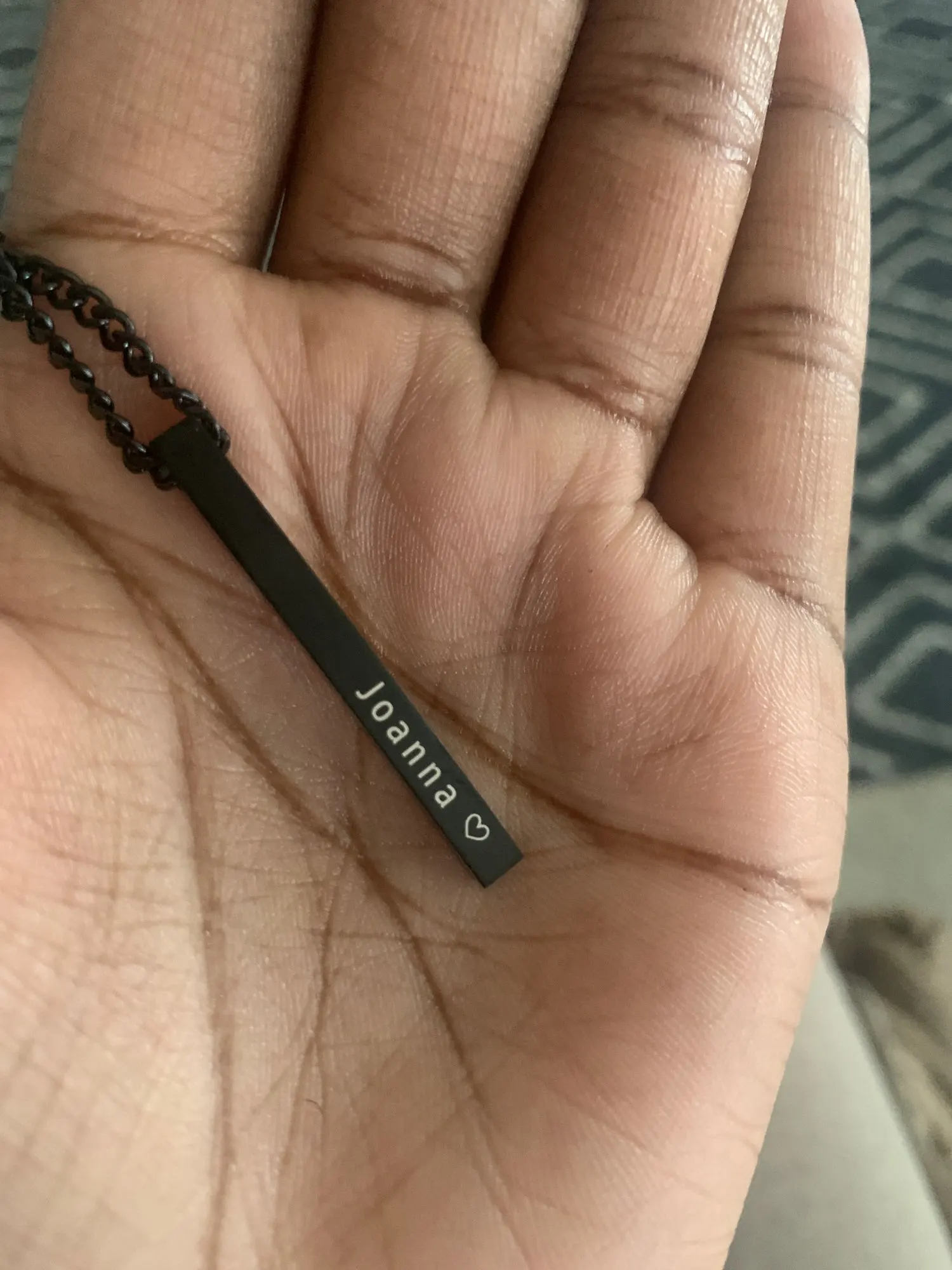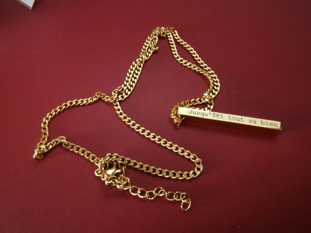 Все отлично. Гравюра очень хорошая, хотя я ожидал, что ожерелье будет немного длиннее. Хорошие вещи. Я прибываю примерно через месяц