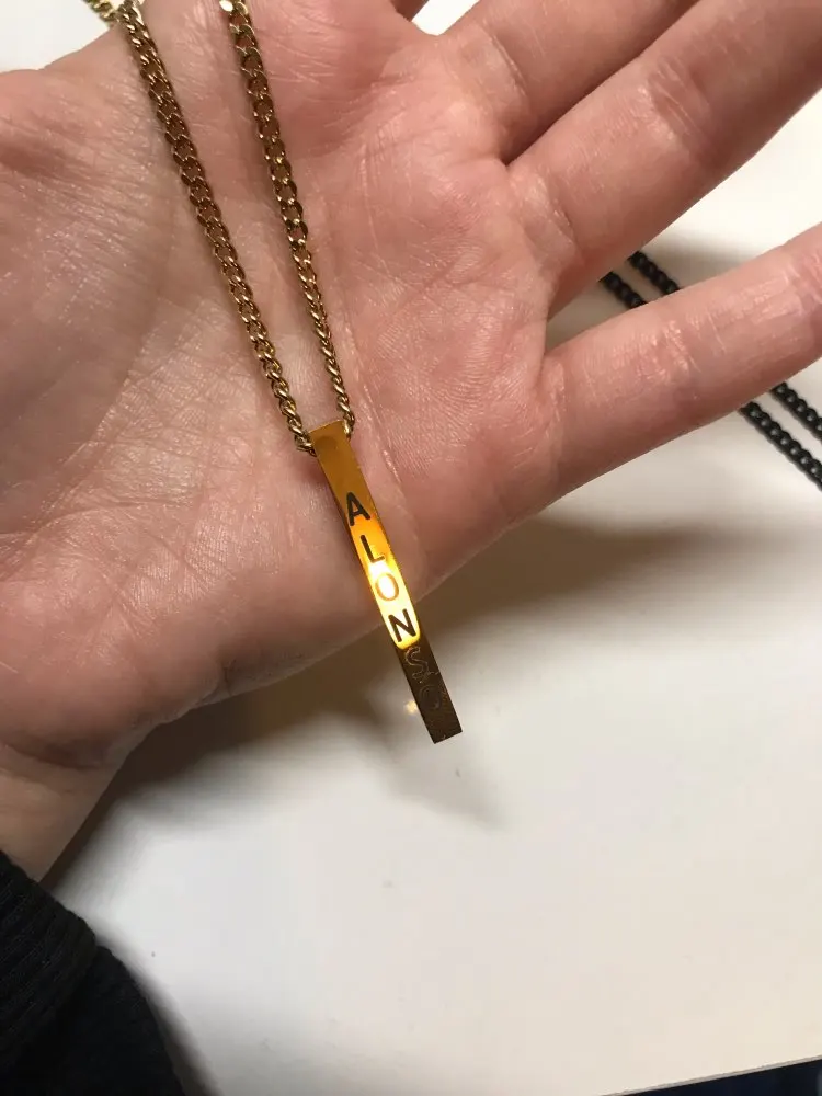 Как на картинке. Ему не нравится цепочка, которая не очень качественная (потому что она тонкая и на ощупь из материала) и не позволяет снять кулон, чтобы поставить еще один лучше (см. Фото). Персонализированный гравировка идеально подходит