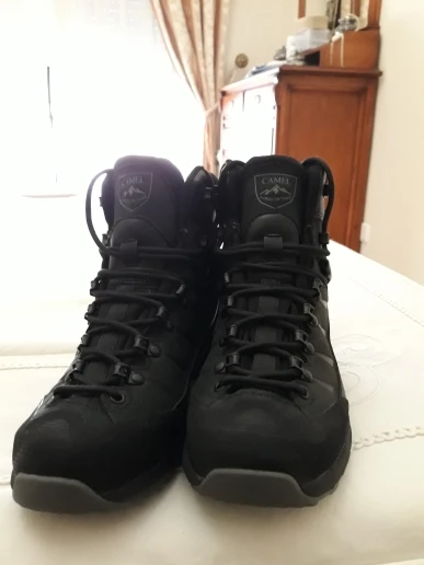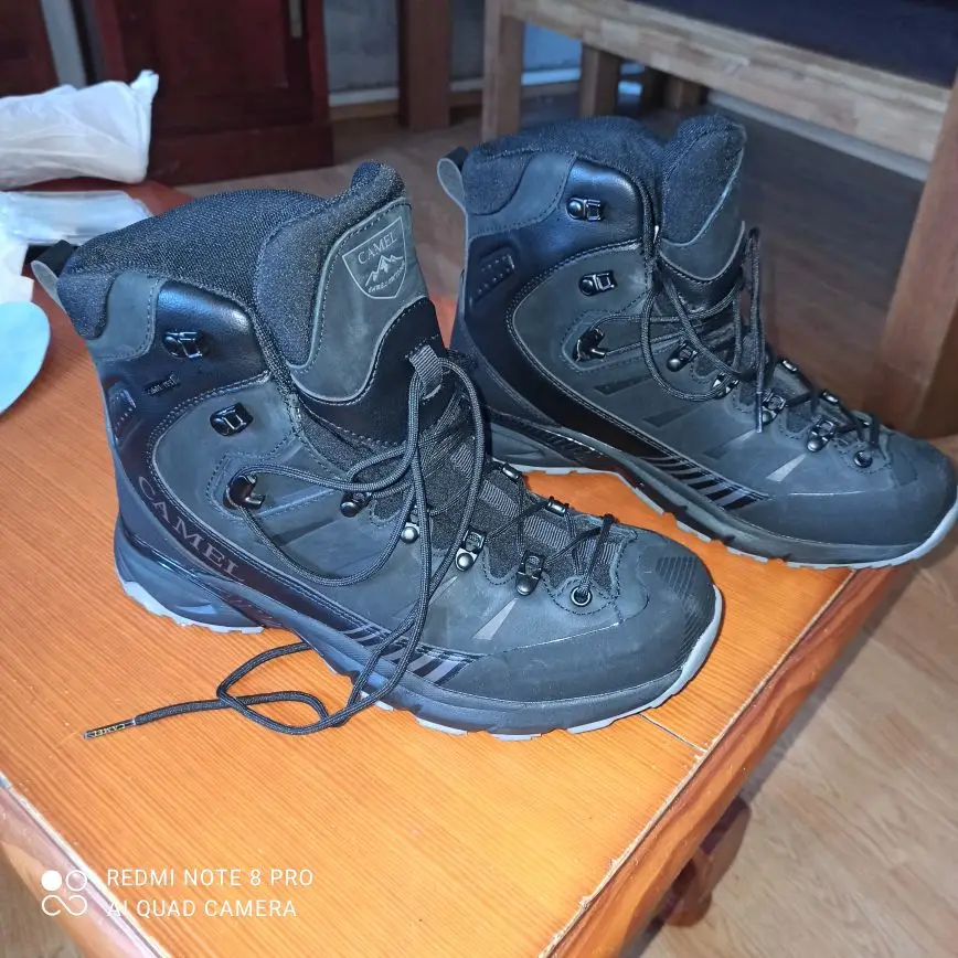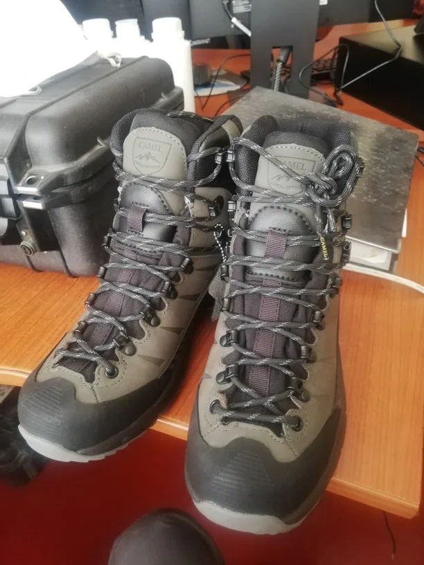 Muy buen material, suela de caucho, con muy buena adherencia en la piedra mojada. Cómodas desde el primer momento. Mi talla en Nike o Adidas es 8,5, es el mismo número para estas botas Camel. Compra muy recomendable.