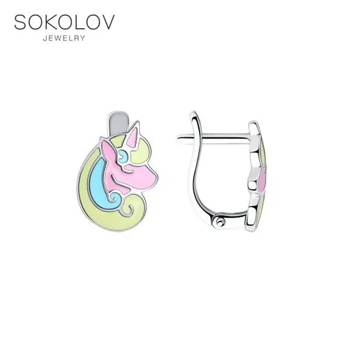 Серьги SOKOLOV из серебра с эмалью, Серебро, 925, Детские, Серьги 2022 тренд, Оригинальная продукция