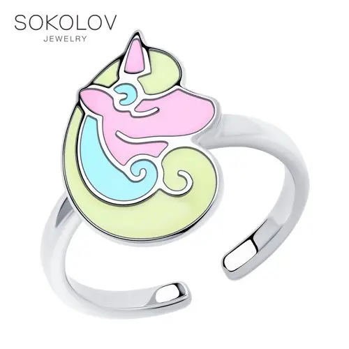 Кольцо SOKOLOV из серебра с эмалью, Серебро, 925, Детское, Оригинал...