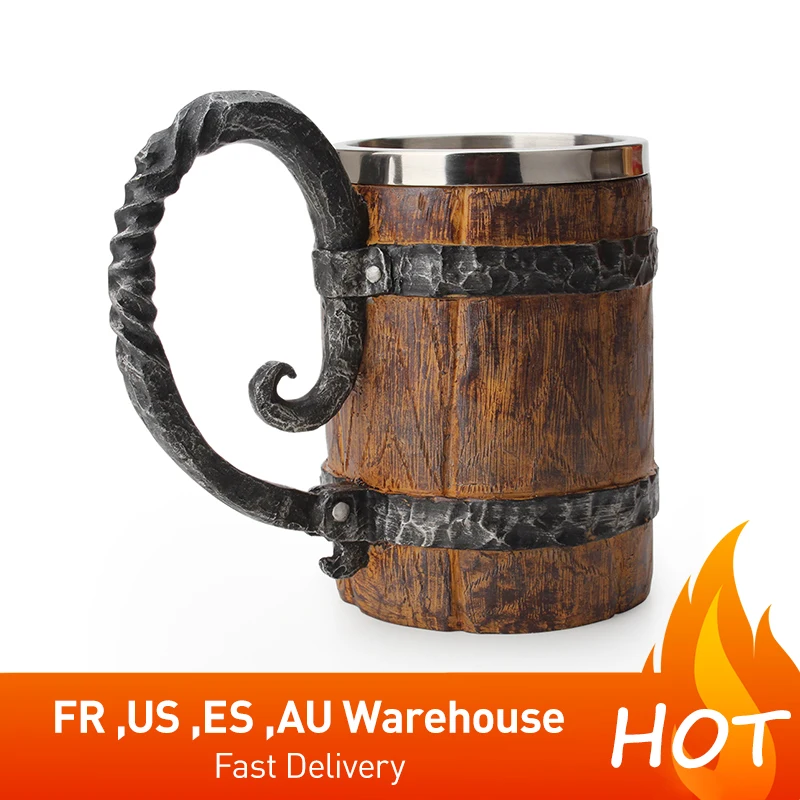 Кружка для напитков в стиле викингов, деревянная, 500 мл, 1 шт.