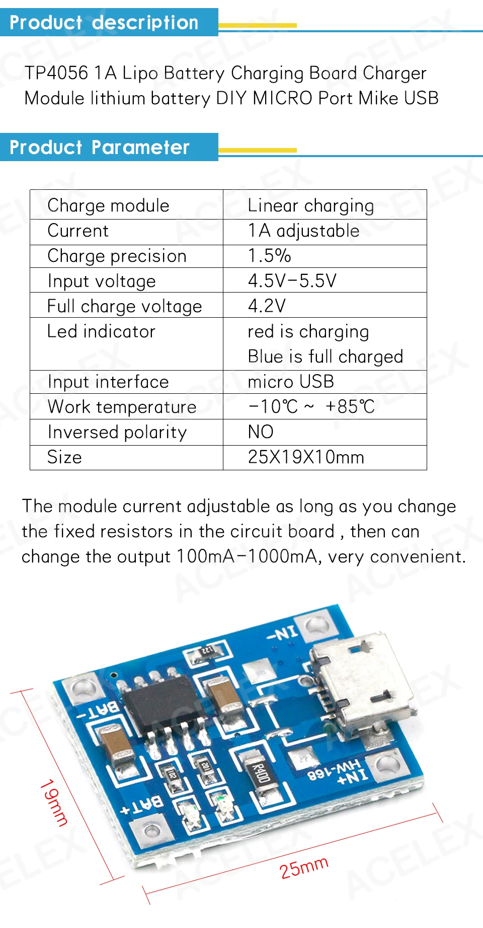 TP4056 1A зарядная плата Lipo для аккумулятора, модуль зарядного устройства, литиевая батарея, DIY порт интерфейса MICRO USB