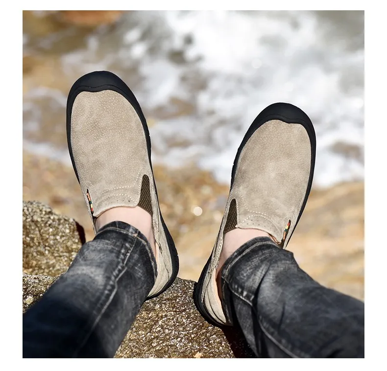 Мужская повседневная обувь на плоской подошве, Мужские дышащие мокасины ручной работы из удобная обувь; Лоферы натуральной кожи, уличные мужские кроссовки