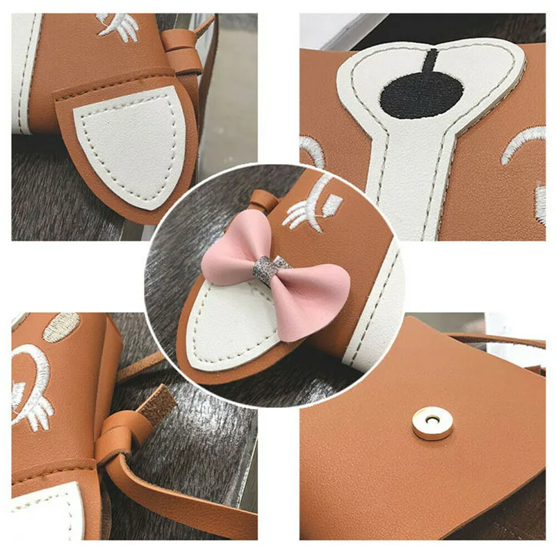 Детские милые кожаные рюкзаки с собакой и бантом для маленьких девочек, модный мессенджер через плечо, сумка на плечо, кошелек