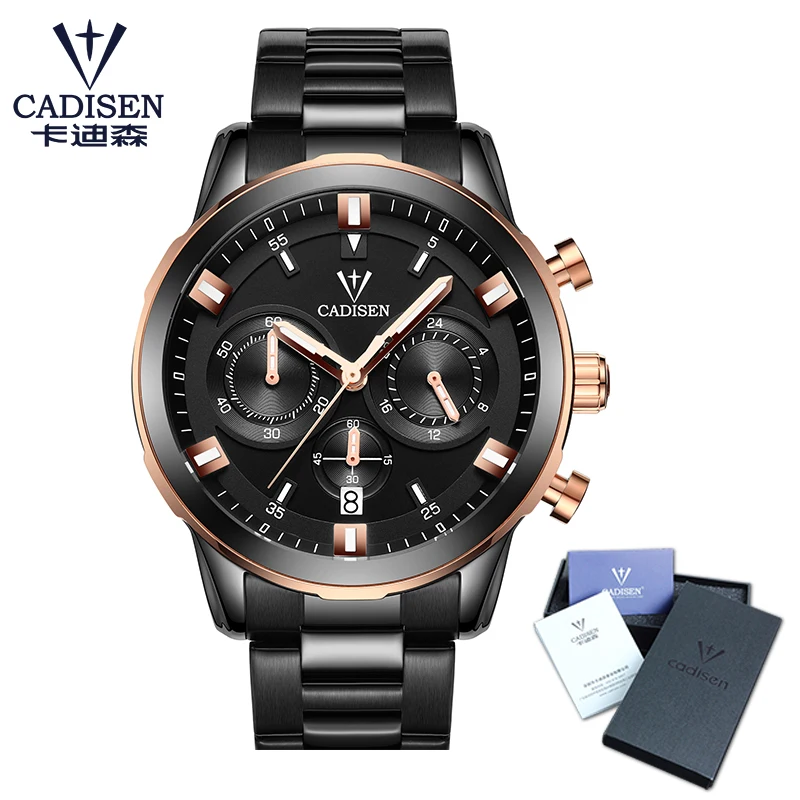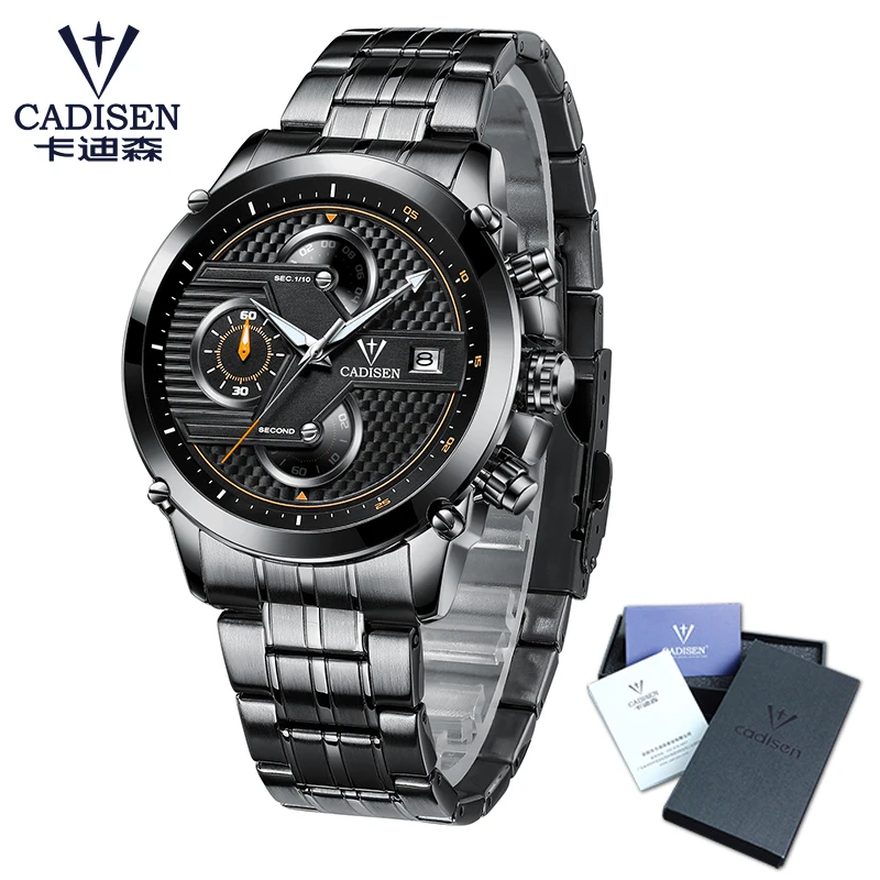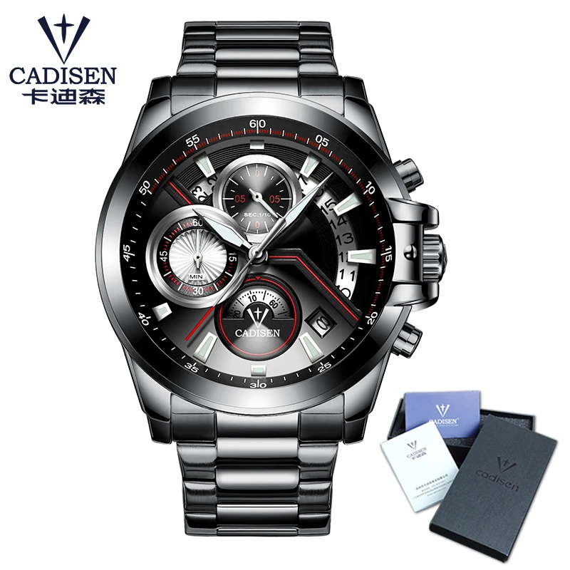 Лидер продаж, мужские часы Cadisen, армейские Роскошные Спортивные Повседневные водонепроницаемые мужские часы, кварцевые мужские наручные часы из нержавеющей стали