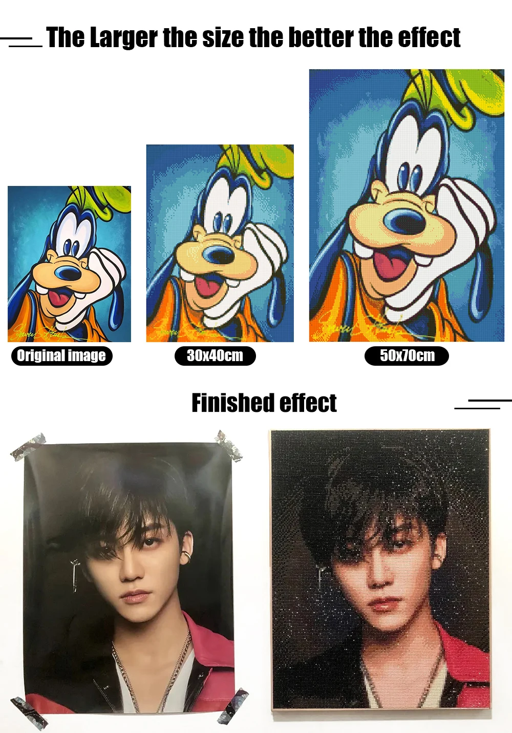 1. Резка, дизайн и изготовление фотографий, размер холста может привести к отклонению размера (колебания на 1-2 см), после получения алмазной картины, пожалуйста, приобретите фоторамку в соответствии с размером алмазной картины.2. Все наши фотографии сделаны по. Цвет всех реальных бриллиантов будет иметь некоторую разницу в цвете, но он должен быть в пределах разумного диапазона. Пожалуйста, поймите это.